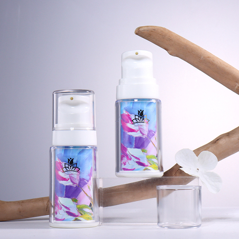 Novo Design Personalizado Skincare Embalagem Luxo Branco Rotativo PET Plástico Cosmético Loção Airless Bomba Garrafa