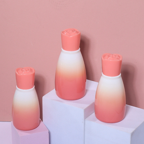 Embalagem conjuntos de fábrica OEM impressão cosméticos plástico PET garrafas com 120ml 100ml 80ml são equipados com uma flor rosa Cap
