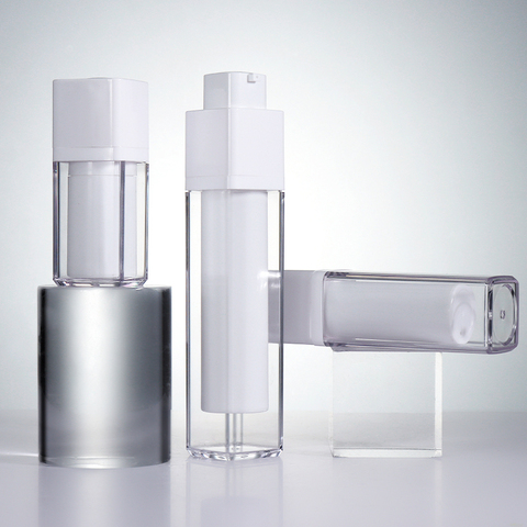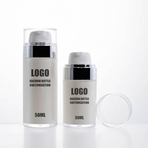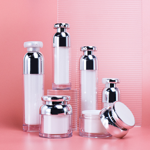 15 मिलीलीटर 30 मिलीलीटर 50 मिलीलीटर 100 लक्जरी चांदी सफेद ऐक्रेलिक एयरलेस सीरम बोतल स्किनकेयर ऐक्रेलिक जार और कॉस्मेटिक्स के लिए बोतलें सेट