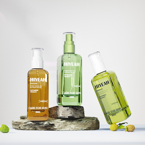 ガラススキンケアボトル80mlスクエア型化粧品包装ポンプ付きオーガニックデザイン